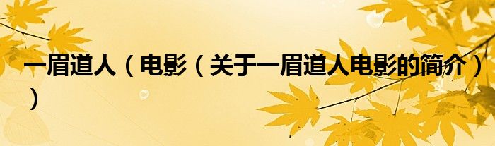 本文關(guān)于一眉道人 電影的簡(jiǎn)介就講解完畢,希望對(duì)大家有所幫助。