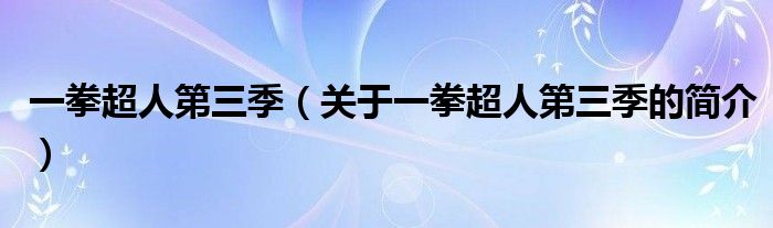 大家好,一拳超人第三季,關(guān)于一拳超人第三季的簡(jiǎn)介很多人還不知道,現(xiàn)在讓我們一起來看看吧!