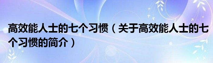 本文關于高效能人士的七個習慣的簡介就講解完畢,希望對大家有所幫助。