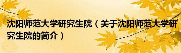 本文關于沈陽師范大學研究生院的簡介就講解完畢,希望對大家有所幫助。