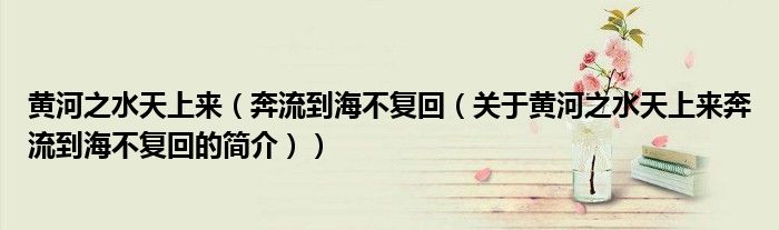 本文關于黃河之水天上來 奔流到海不復回的簡介就講解完畢,希望對大家有所幫助。