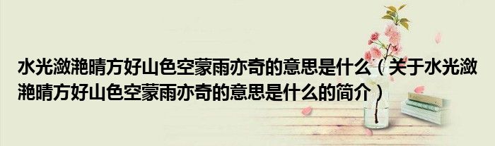 本文關(guān)于水光瀲滟晴方好山色空蒙雨亦奇的意思是什么的簡(jiǎn)介就講解完畢,希望對(duì)大家有所幫助。