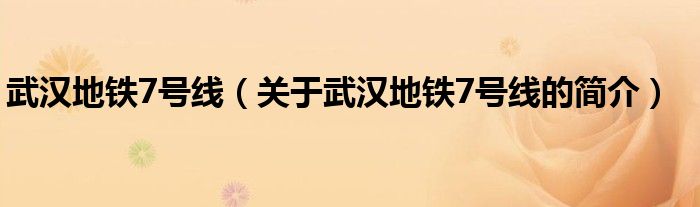 本文關于武漢地鐵7號線的簡介就講解完畢,希望對大家有所幫助。