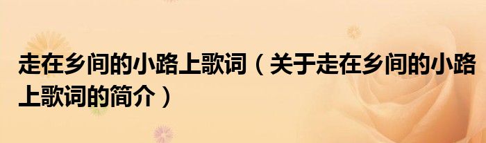本文關于走在鄉間的小路上歌詞的簡介就講解完畢,希望對大家有所幫助。