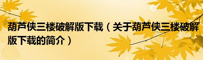 本文關于葫蘆俠三樓破解版下載的簡介就講解完畢,希望對大家有所幫助。