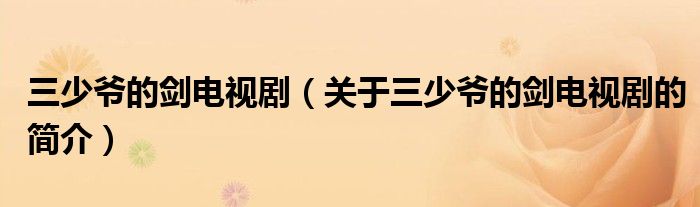 本文關于三少爺的劍電視劇的簡介就講解完畢,希望對大家有所幫助。