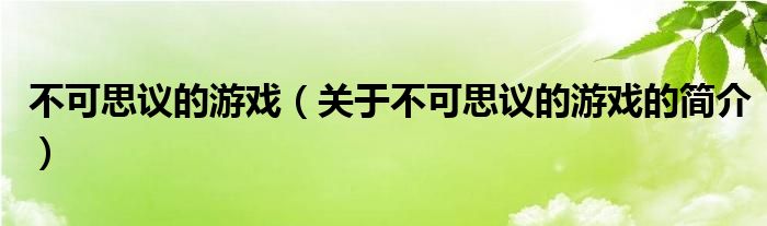 本文關于不可思議的游戲的簡介就講解完畢,希望對大家有所幫助。