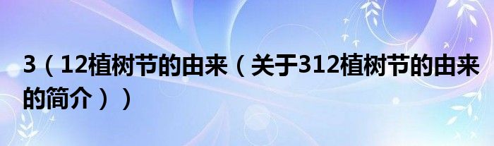 本文關于3 12植樹節的由來的簡介就講解完畢,希望對大家有所幫助。