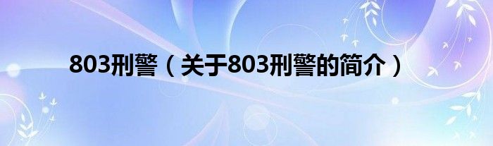 本文關于803刑警的簡介就講解完畢,希望對大家有所幫助。