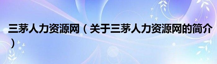本文關于三茅人力資源網的簡介就講解完畢,希望對大家有所幫助。