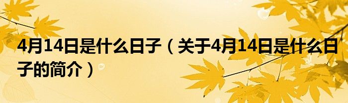 本文關于4月14日是什么日子的簡介就講解完畢,希望對大家有所幫助。