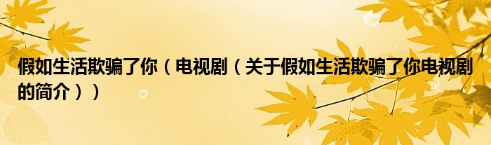 大家好,假如生活欺騙了你 電視劇,關于假如生活欺騙了你 電視劇的簡介很多人還不知道,現在讓我們一起來看看吧!