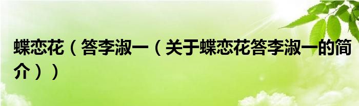 大家好,蝶戀花 答李淑一,關于蝶戀花 答李淑一的簡介很多人還不知道,現在讓我們一起來看看吧!