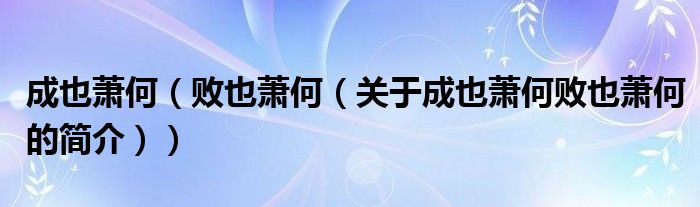 本文關于成也蕭何 敗也蕭何的簡介就講解完畢,希望對大家有所幫助。