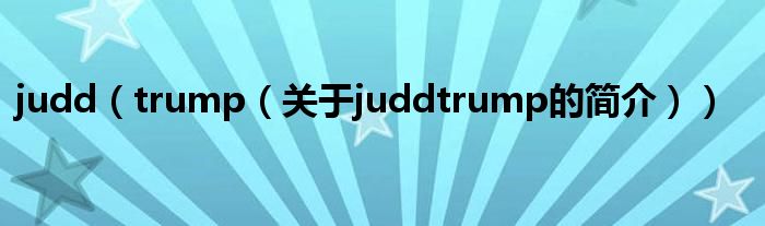 大家好,judd trump,關于judd trump的簡介很多人還不知道,現在讓我們一起來看看吧!