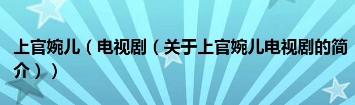 本文關于上官婉兒 電視劇的簡介就講解完畢,希望對大家有所幫助。
