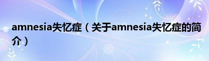 本文關于amnesia失憶癥的簡介就講解完畢,希望對大家有所幫助。