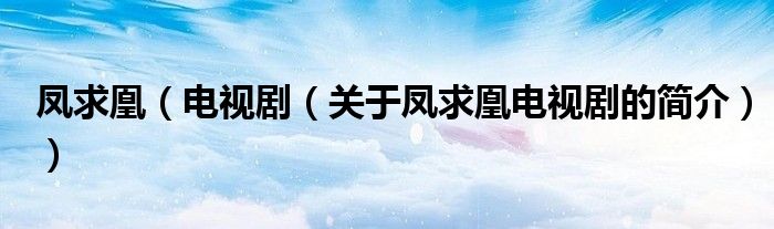本文關于鳳求凰 電視劇的簡介就講解完畢,希望對大家有所幫助。