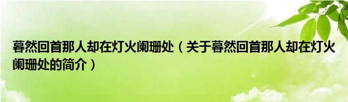 本文關于暮然回首那人卻在燈火闌珊處的簡介就講解完畢,希望對大家有所幫助。