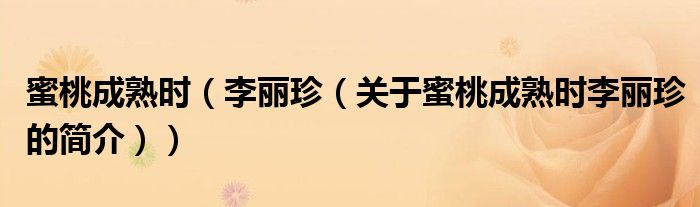 大家好,蜜桃成熟時 李麗珍,關(guān)于蜜桃成熟時 李麗珍的簡介很多人還不知道,現(xiàn)在讓我們一起來看看吧!