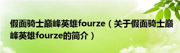 本文關于假面騎士巔峰英雄fourze的簡介就講解完畢,希望對大家有所幫助。