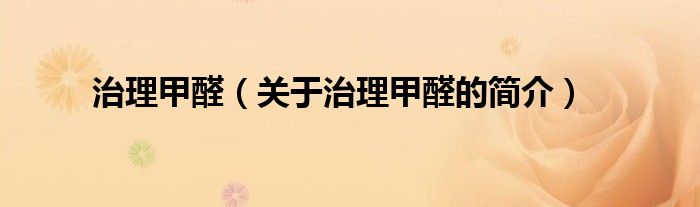 本文關于治理甲醛的簡介就講解完畢,希望對大家有所幫助。