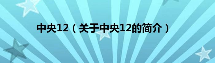 本文關于中央12的簡介就講解完畢,希望對大家有所幫助。