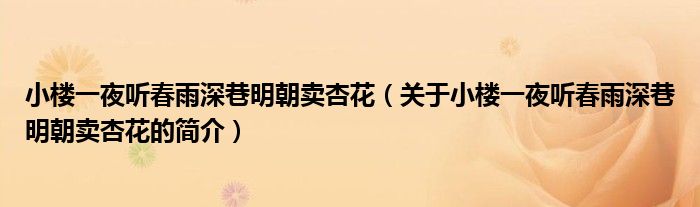 本文關于小樓一夜聽春雨深巷明朝賣杏花的簡介就講解完畢,希望對大家有所幫助。