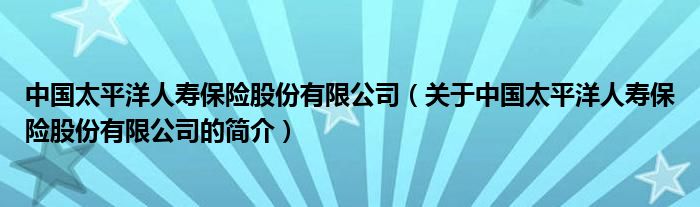 本文關于中國太平洋人壽保險股份有限公司的簡介就講解完畢,希望對大家有所幫助。