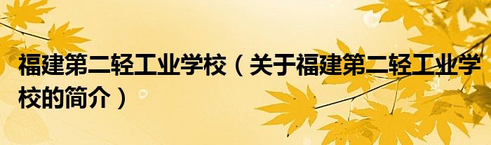 本文關(guān)于福建第二輕工業(yè)學(xué)校的簡介就講解完畢,希望對大家有所幫助。