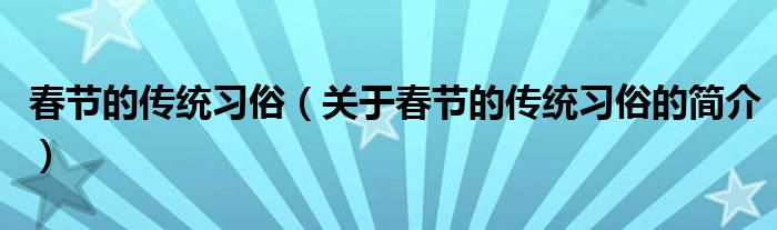 大家好,春節的傳統習俗,關于春節的傳統習俗的簡介很多人還不知道,現在讓我們一起來看看吧!
