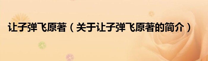 本文關于讓子彈飛原著的簡介就講解完畢,希望對大家有所幫助。