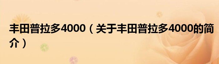本文關(guān)于豐田普拉多4000的簡介就講解完畢,希望對(duì)大家有所幫助。