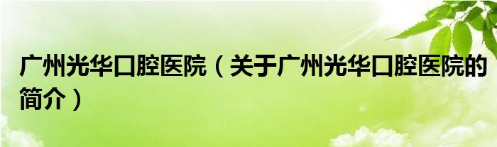 本文關于廣州光華口腔醫院的簡介就講解完畢,希望對大家有所幫助。