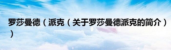 大家好,羅莎曼德 派克,關于羅莎曼德 派克的簡介很多人還不知道,現在讓我們一起來看看吧!