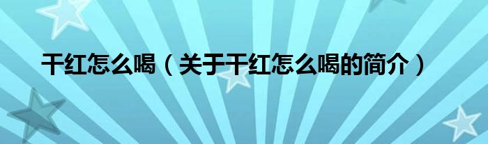 本文關于干紅怎么喝的簡介就講解完畢,希望對大家有所幫助。