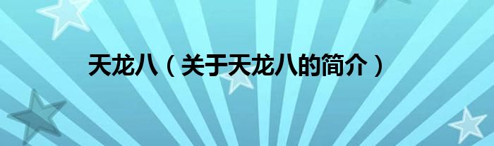 大家好,天龍八,關(guān)于天龍八的簡介很多人還不知道,現(xiàn)在讓我們一起來看看吧!