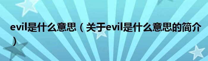 本文關(guān)于evil是什么意思的簡介就講解完畢,希望對大家有所幫助。