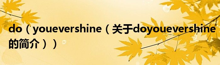本文關于do you ever shine的簡介就講解完畢,希望對大家有所幫助。