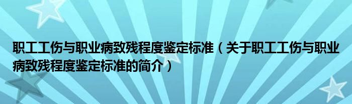 本文關于職工工傷與職業病致殘程度鑒定標準的簡介就講解完畢,希望對大家有所幫助。