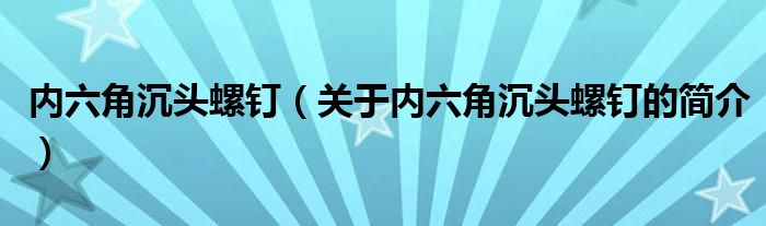 本文關于內六角沉頭螺釘的簡介就講解完畢,希望對大家有所幫助。