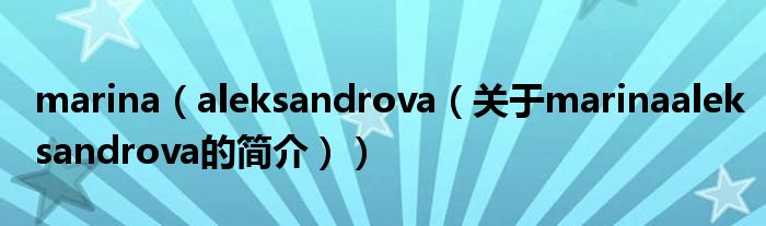 大家好,marina aleksandrova,關于marina aleksandrova的簡介很多人還不知道,現在讓我們一起來看看吧!