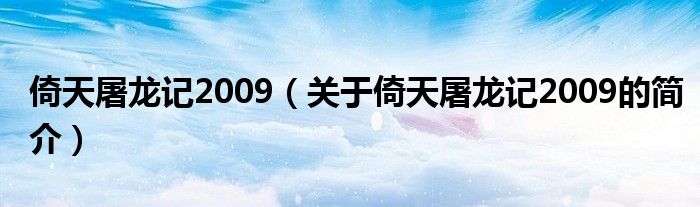 大家好,倚天屠龍記2009,關于倚天屠龍記2009的簡介很多人還不知道,現在讓我們一起來看看吧!