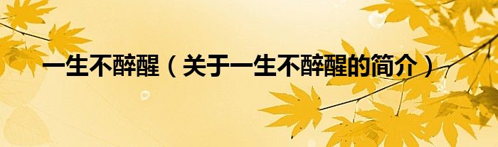 大家好,一生不醉醒,關于一生不醉醒的簡介很多人還不知道,現在讓我們一起來看看吧!