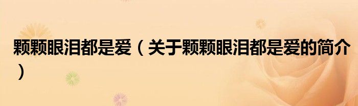 大家好,顆顆眼淚都是愛,關(guān)于顆顆眼淚都是愛的簡介很多人還不知道,現(xiàn)在讓我們一起來看看吧!