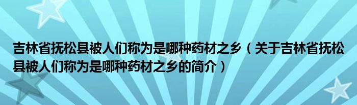 本文關(guān)于吉林省撫松縣被人們稱為是哪種藥材之鄉(xiāng)的簡(jiǎn)介就講解完畢,希望對(duì)大家有所幫助。