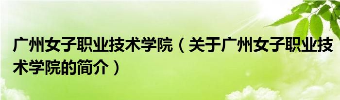本文關(guān)于廣州女子職業(yè)技術(shù)學(xué)院的簡介就講解完畢,希望對大家有所幫助。