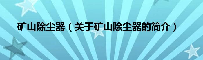 本文關于礦山除塵器的簡介就講解完畢,希望對大家有所幫助。