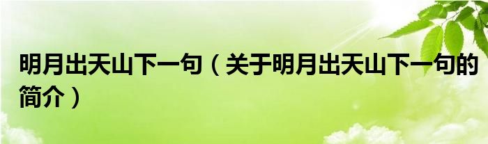 本文關于明月出天山下一句的簡介就講解完畢,希望對大家有所幫助。