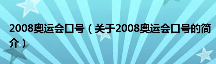 本文關(guān)于2008奧運會口號的簡介就講解完畢,希望對大家有所幫助。